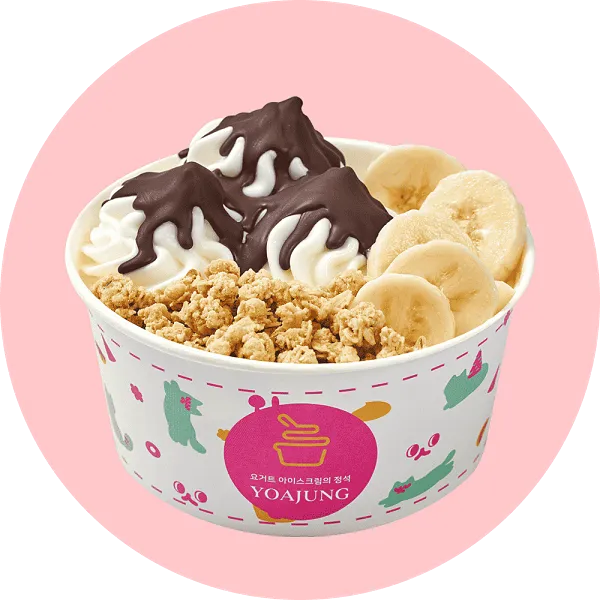 바나나의 달콤함과 초코 그래놀라의 바삭함이 더해져 초코팬들에게 인기 있는 조합입니다.