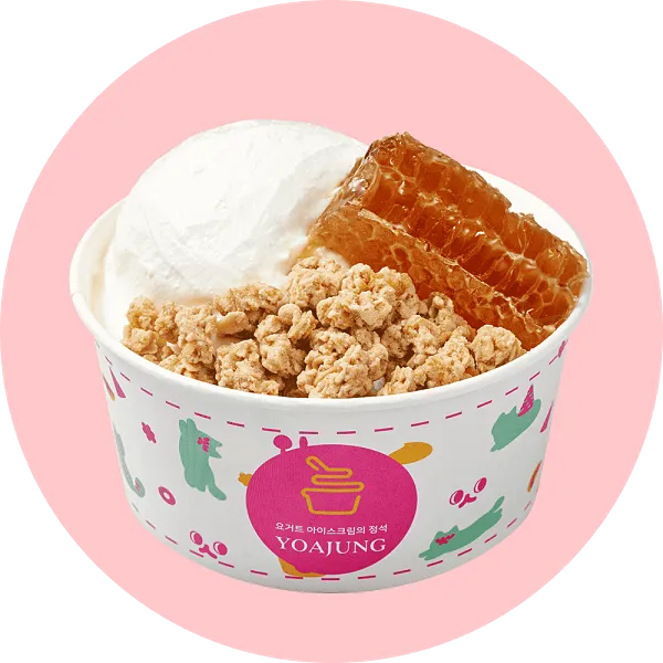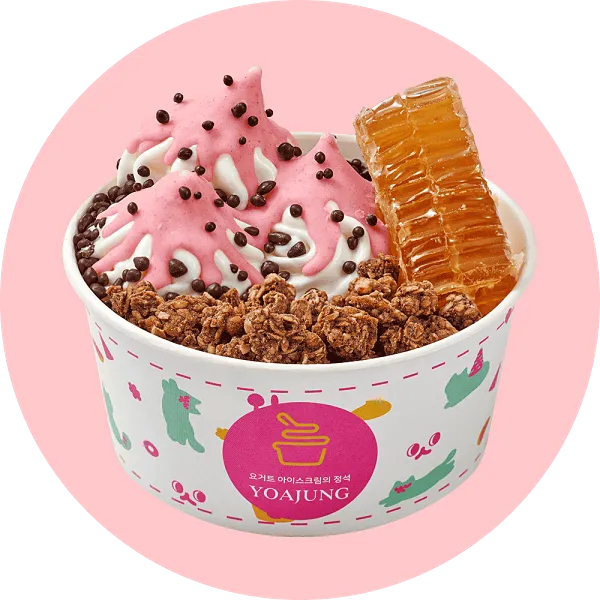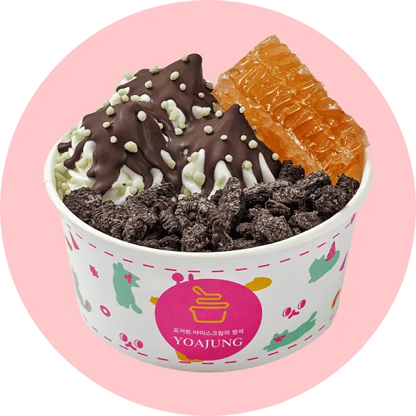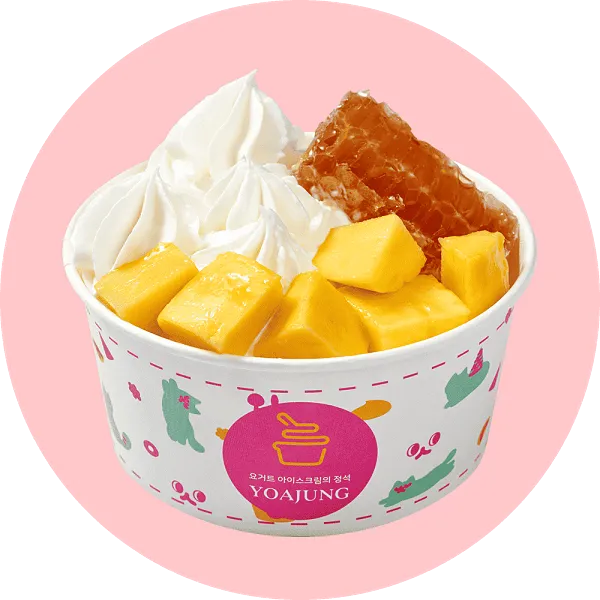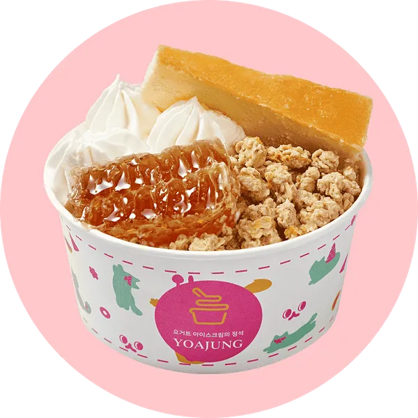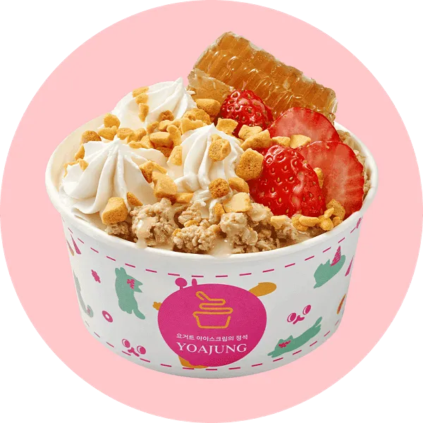가장 인기 있는 메뉴는 '요거트 아이스크림 + 벌집꿀 + 딸기 + 치즈 큐브' 조합입니다. 달콤함과 상큼함, 고소함이 잘 어우러져 많은 사랑을 받고 있습니다.