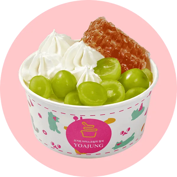 꿀조합 3: 요거트 아이스크림 + 그래놀라 + 팝핑 캔디 + 말린 샤인머스캣
